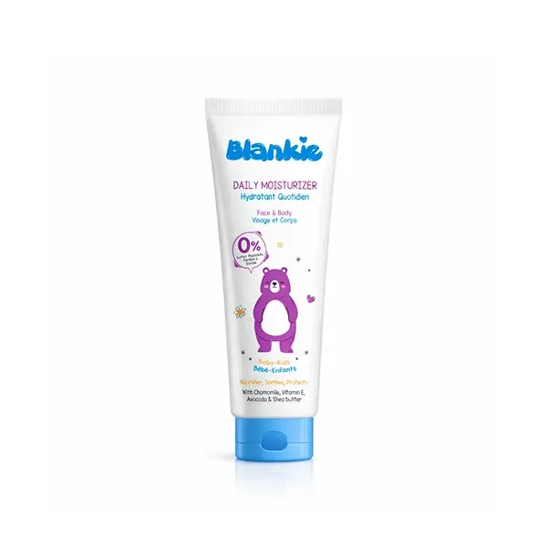 Blankie Moisturizer fixes this with a light, fast-absorbing formula. It deeply hydrates, calms irritation, and supports the skin barrier. Safe for daily use on the face and body for the whole family.